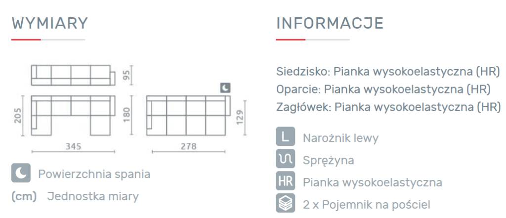 – Oparcie w narożniku wykonane są na piance wysokoelastycznej HR,