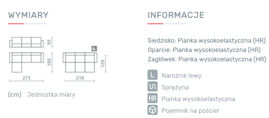 – Oparcie w narożniku wykonane są na piance wysokoelastycznej HR,