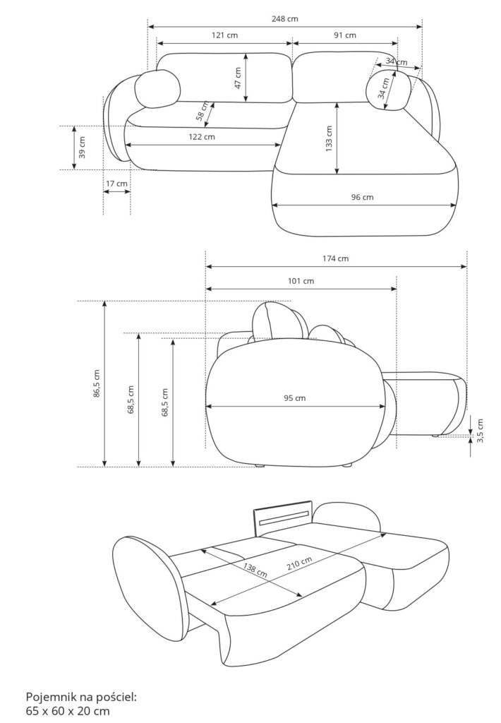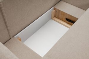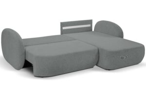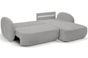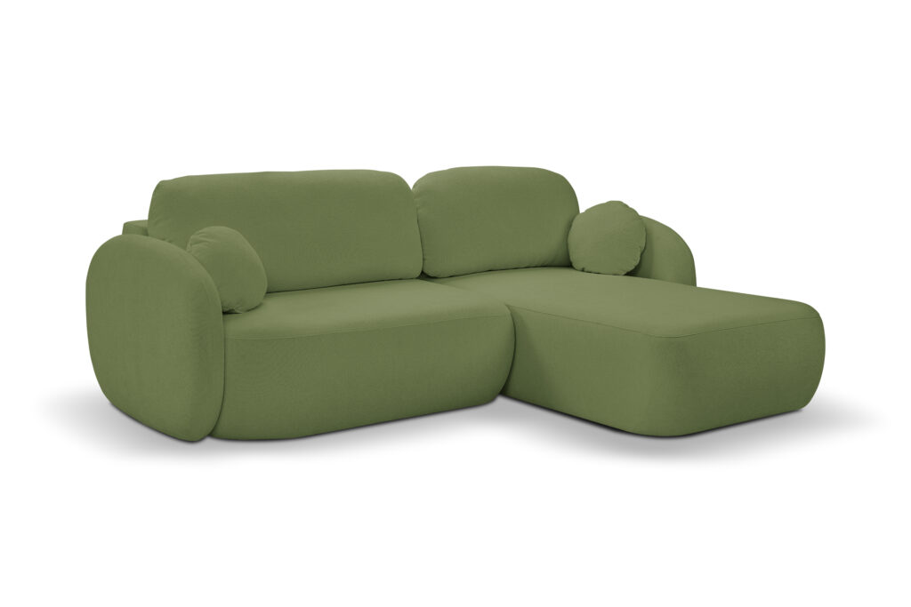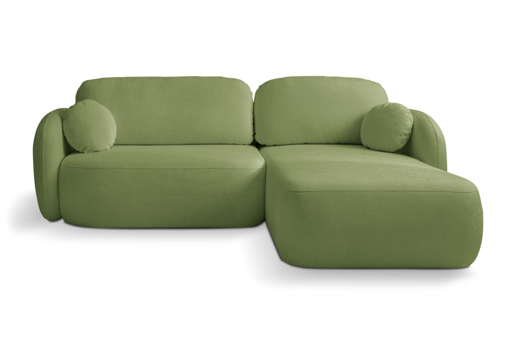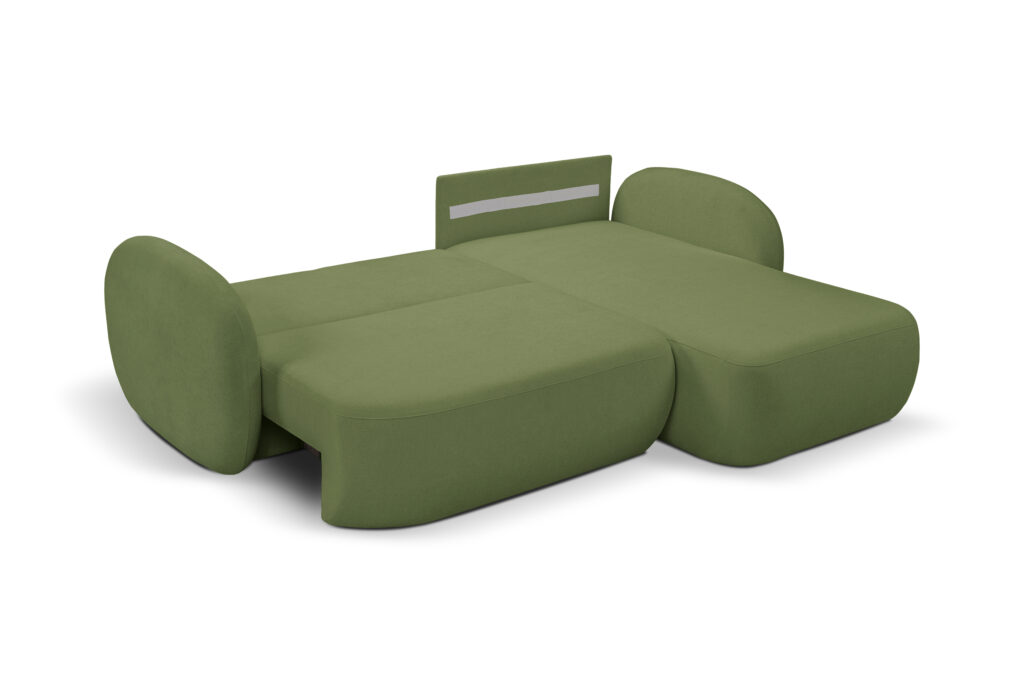 Super wygodny, nowoczesny narożnik Olio do salonu z funkcją spania oraz pojemnikiem na pościel wykonany na sprężynie falistej.