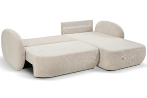 Narożnik Olio posiada miękkie siedzisko 0raz oparcie,wypełnione wysokiej jakości pianką, zapewnia wyjątkowy komfort i zachęca do relaksu.Jego zaokrąglne kształty nadają mu przytulny charakter jednocześnie wprowadzając do salonu harmonię i spokój.