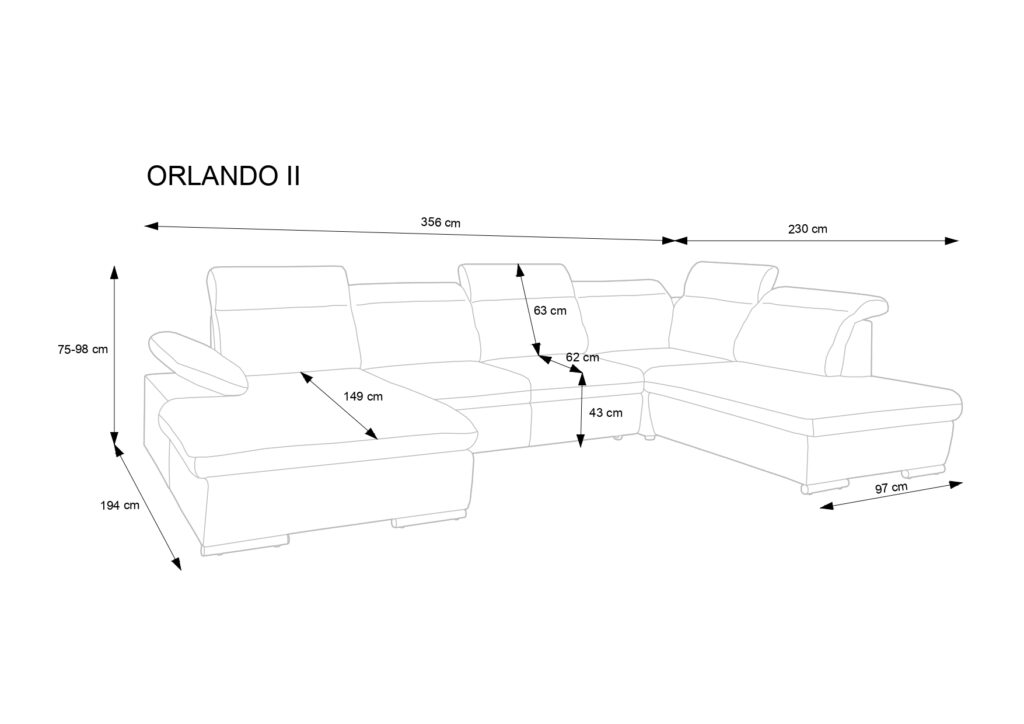 Narożnik Orlando II Podkowa z funkcją spania – Piaski Meble