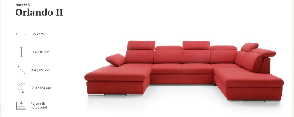 Super wygodny, nowoczesny narożnik Orlando II w podkowie , z funkcją spania oraz pojemnikiem na pościel.