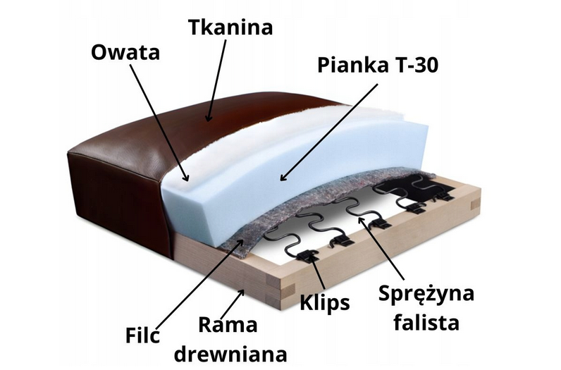 Sprężyna falista ma za zadanie wypychać piankę w górę, dzięki czemu z jednej strony ją amortyzuje, a następnie podnosi, dzięki czemu siedzisko zachowuje swój wygląd użytkowy.