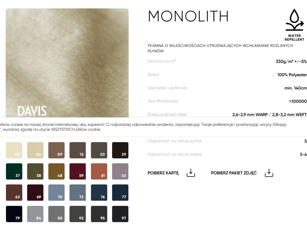 Narożnik wykonany jest w wysoko gatunkowej tkaninie Monolith.Dostępny do wyboru jest pełny wzornik kolorystyczny tej tkaniny.