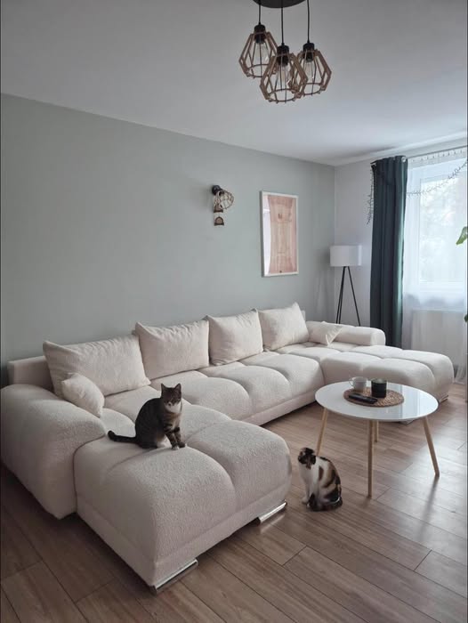 Narożnik dostępny jest też w kształcie L.Do narożnika można również kupić pufę.