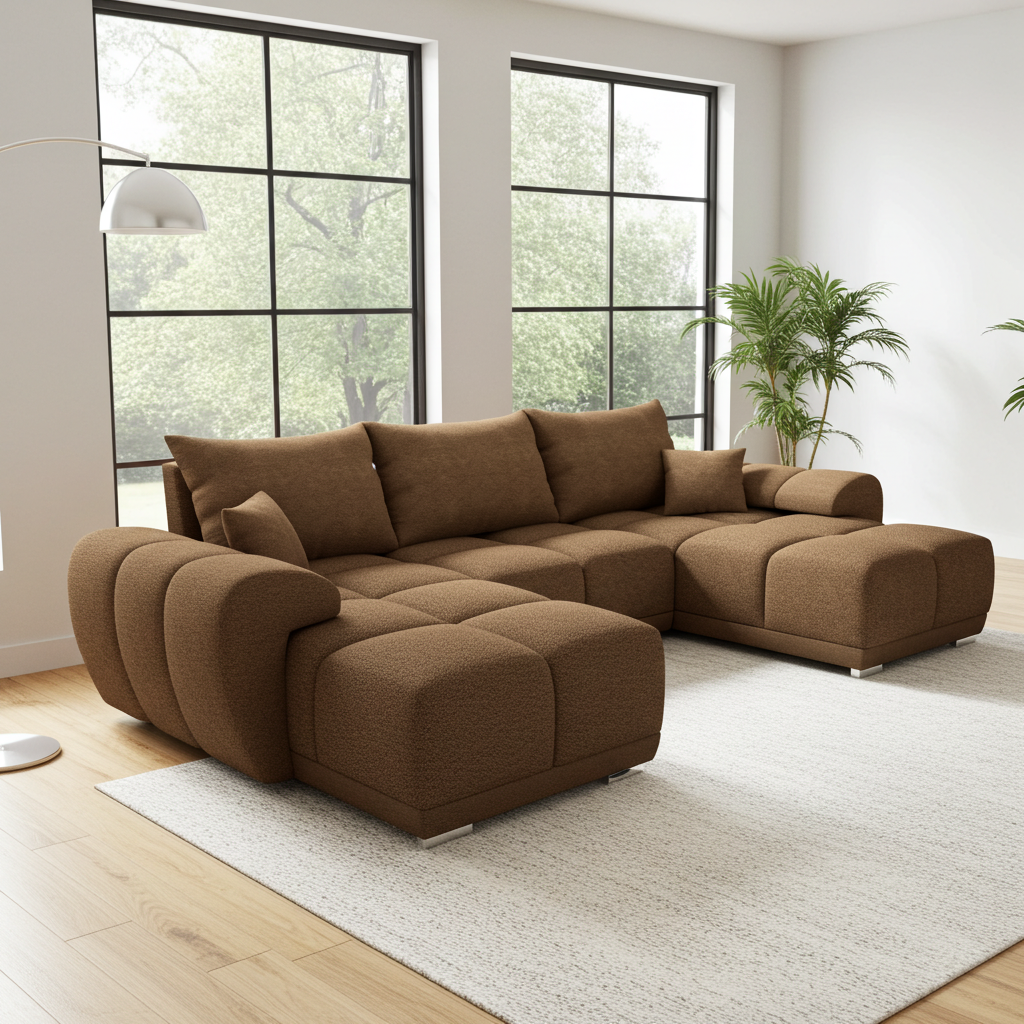 Przedmiotem oferty jest piękny pikowany narożnik Oslo U w kształcie podkowy.Narożnik posiada fukncję spania oraz pojemnik na pościel.