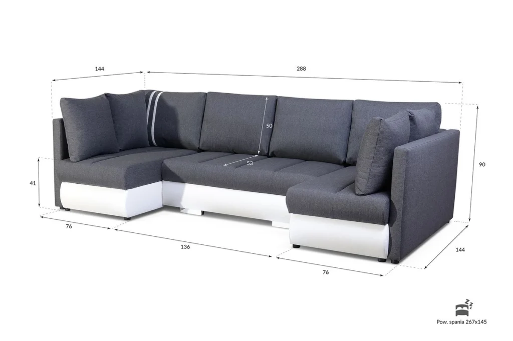 Piękny narożnik R-City U z funkcją spania marki Kinas