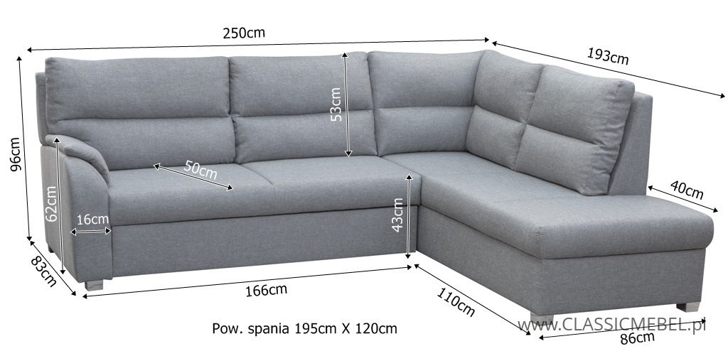 Narożnik marki Kinas, wykonany na sprężynach falistych.