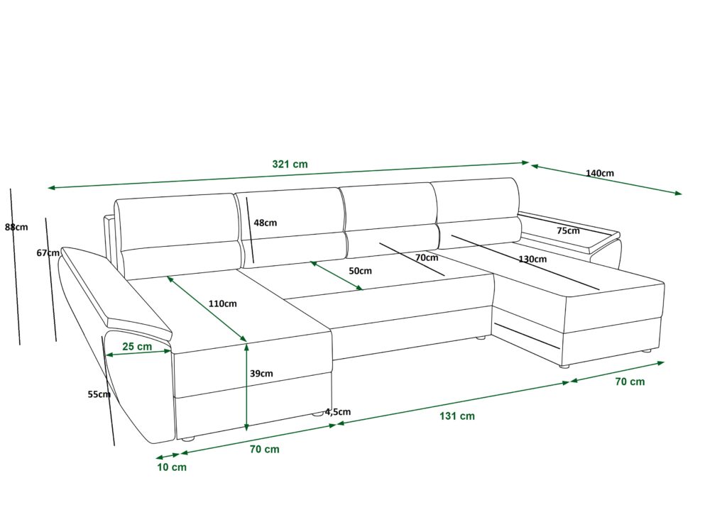 Narożnik jest uniwersalny i symetryczny więc nie ma potrzeby wybierania strony mebla.