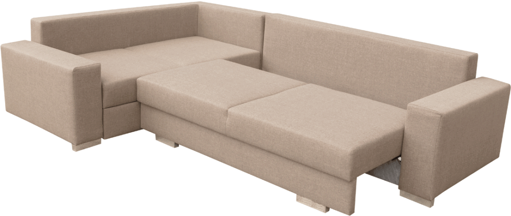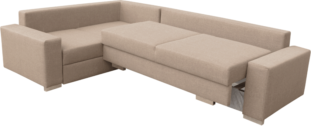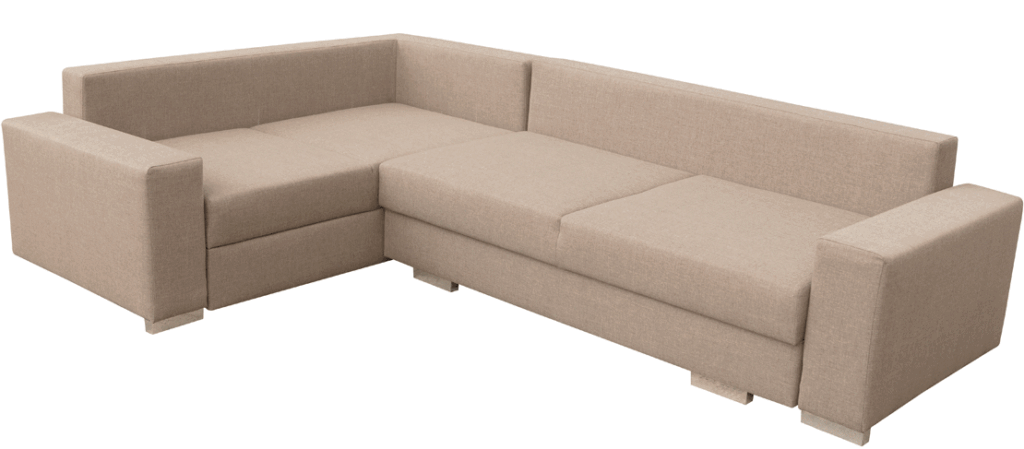 Narożnik marki Kinas, wykonany na sprężynach falistych. Posiada obszerny pojemnik na pościel.