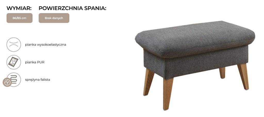 Podnóżek dostępny jest w szerokiej gamie tkanin obiciowych.