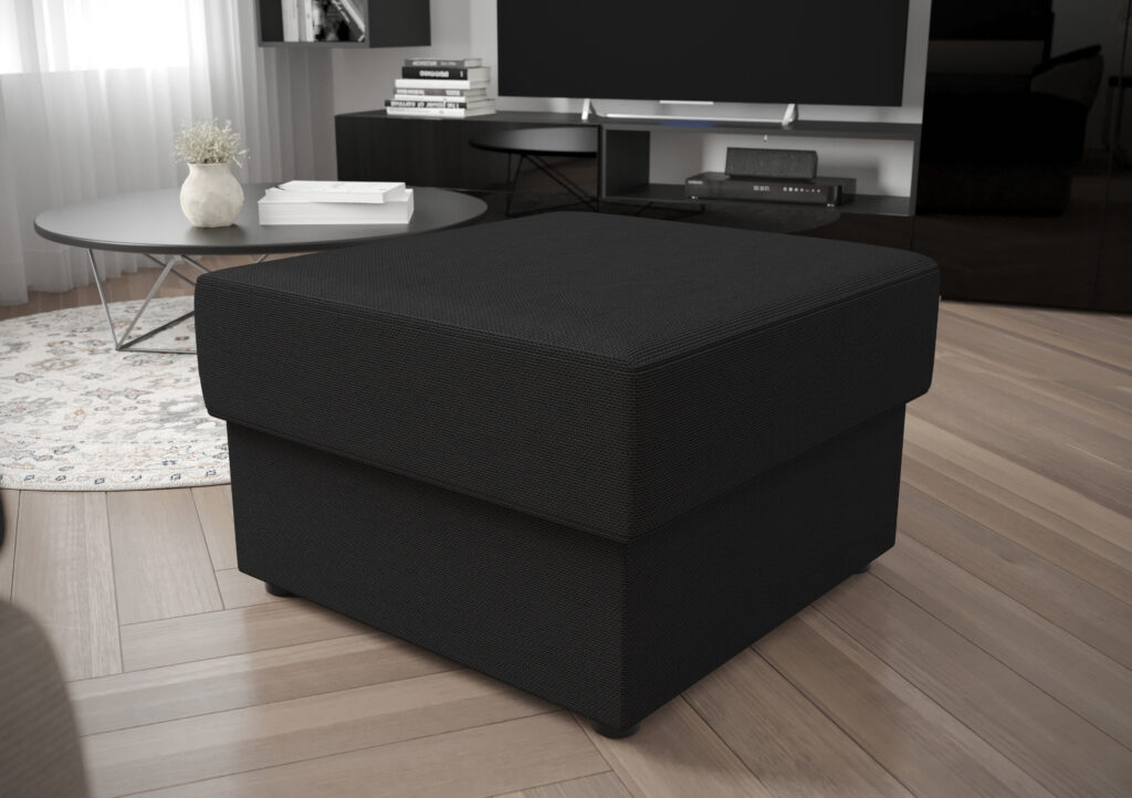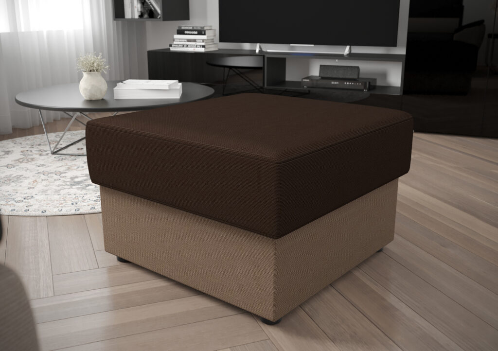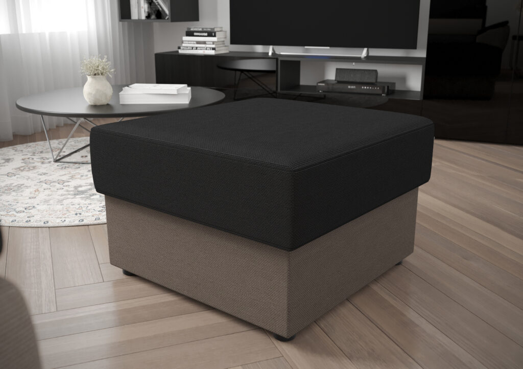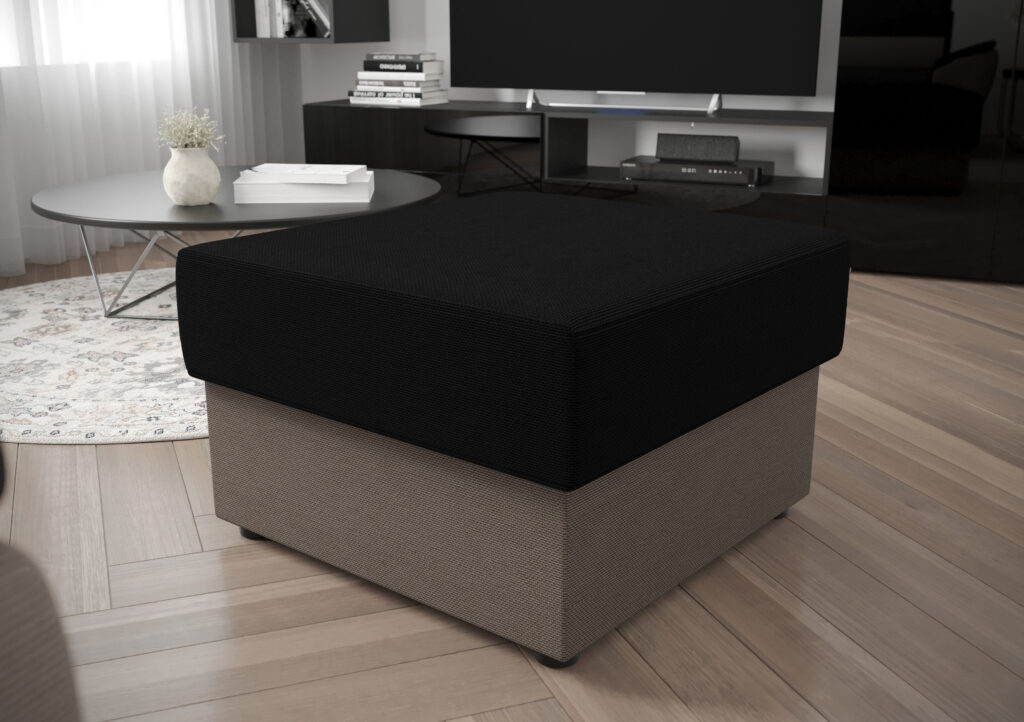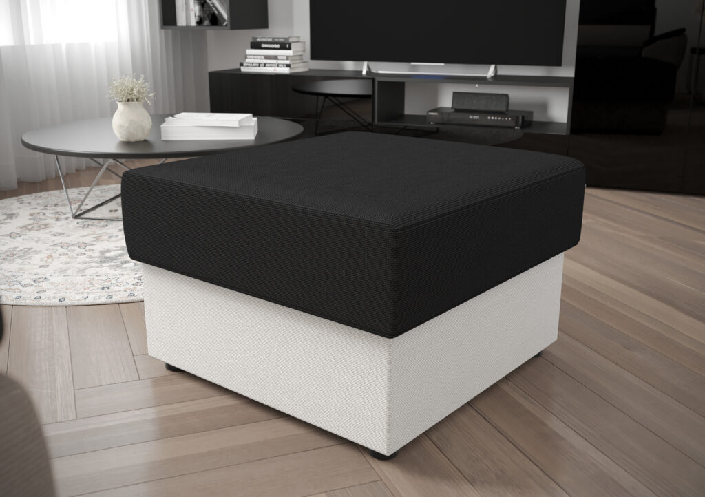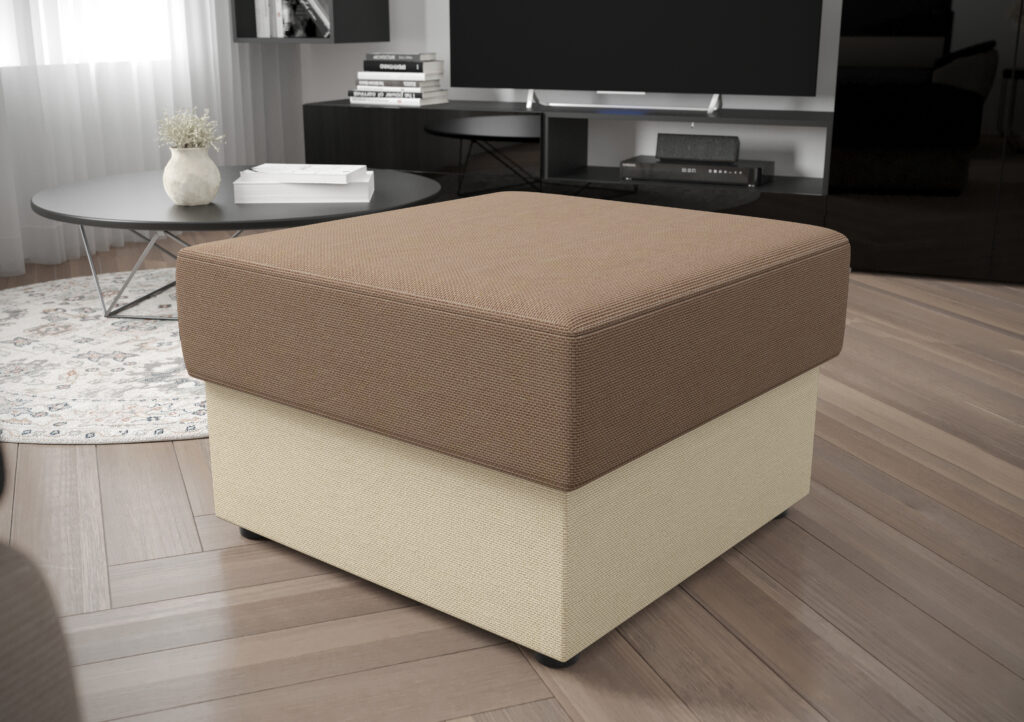 Pufa Rebi do nowoczesnego salonu wykonana na sprężynie falistej.