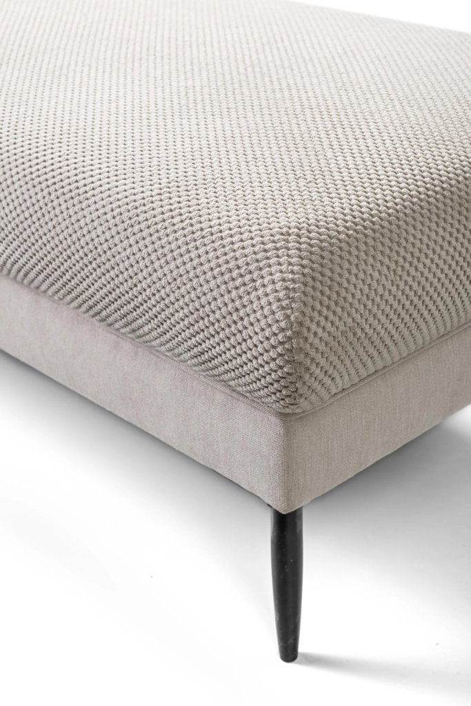 Pufa dostępna jest w szerokiej gamie tkanin obiciowych.