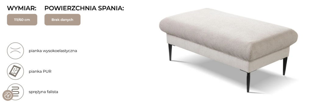 Komfort użytkowania gwarantują poduszki siedziskowe, których wnętrza zawierają między innymi pianki poliuretanowe, pianki wysokoelastyczne.
