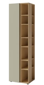Cena dotyczy regału wysokiego z półkami Luca LC4 w kolorze eukaliptus / dąb baltic dune widocznego na zdjęciu poniżej.