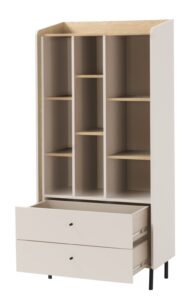Cena dotyczy regał z szufladami Alessio AE6 w kolorze beż piaskowy / dąb olejowany widocznej na zdjęciu poniżej.
