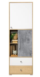 Meble systemowe Step to duży wybór elementów, które pozwalają na dowolne konfigurowanie własnego kompletu. Zastosowano tutaj oryginalną, kontrastową kolorystykę. Meble z pewnością urozmaicą każde pomieszczenie. Meble wykonane są z płyty laminowanej, zabezpieczonej okleiną ABS.