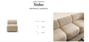 Nowoczesny, zestaw modułowy NOBO w obłych modnych kształtach.Zaokrąglone,obłe kształty tej bryły nadają mu nowoczesnego charakteru.