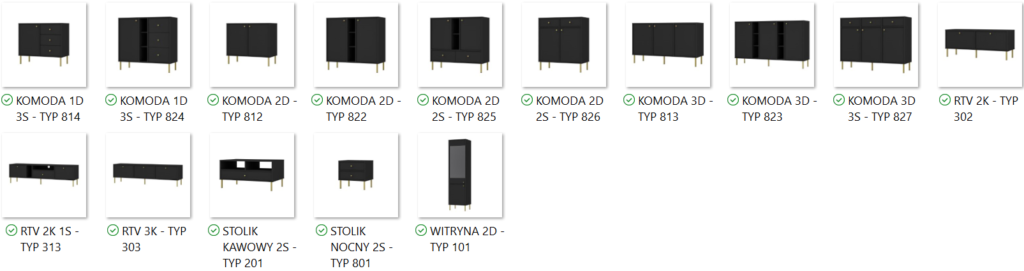 Istnieje możliwość konfiguracji mebli z serii Tokyo według własnych potrzeb.