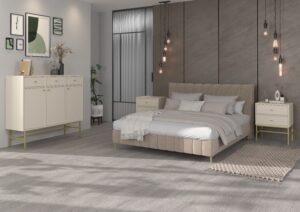 Stolik szafka nocna Tokyo 2S – stelaż złoty – Beż Piaskowy – Lempert