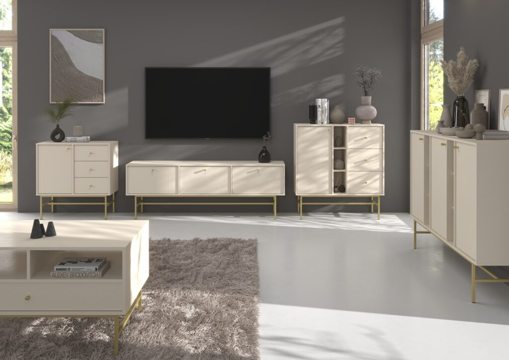 Stolik szafka nocna Tokyo 2S – stelaż złoty – Beż Piaskowy – Lempert