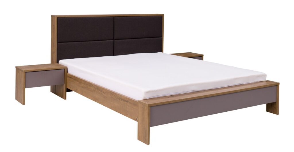 Cena obejmuje sypialnię Latika widoczną na zdjęciu poniżej w kolorze dąb burgundzki / popiel. Cena nie obejmuje materaca.