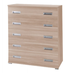 W skład zestawu wchodzi : szafa, łoże z pojemnikiem, toaletka, komoda 5 szuflad oraz stolik nocny – 2 sztuki.