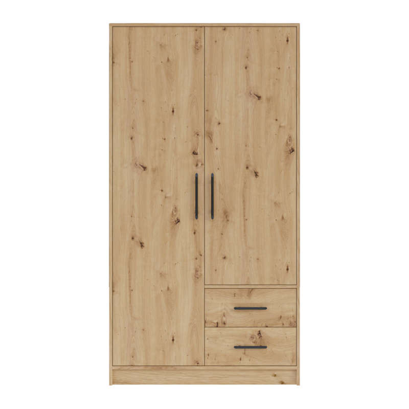 Cena dotyczy zestawu mebli do sypialni Smart w kolorze dąb sonoma / biały lux widocznego na zdjęciu poniżej. Cena nie obejmuje materaca.