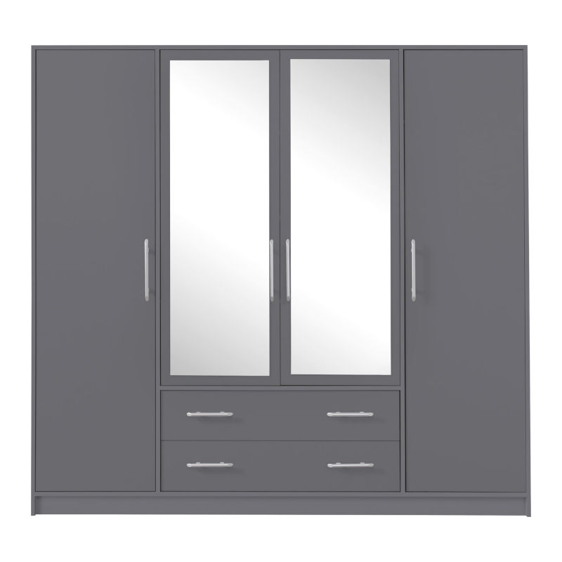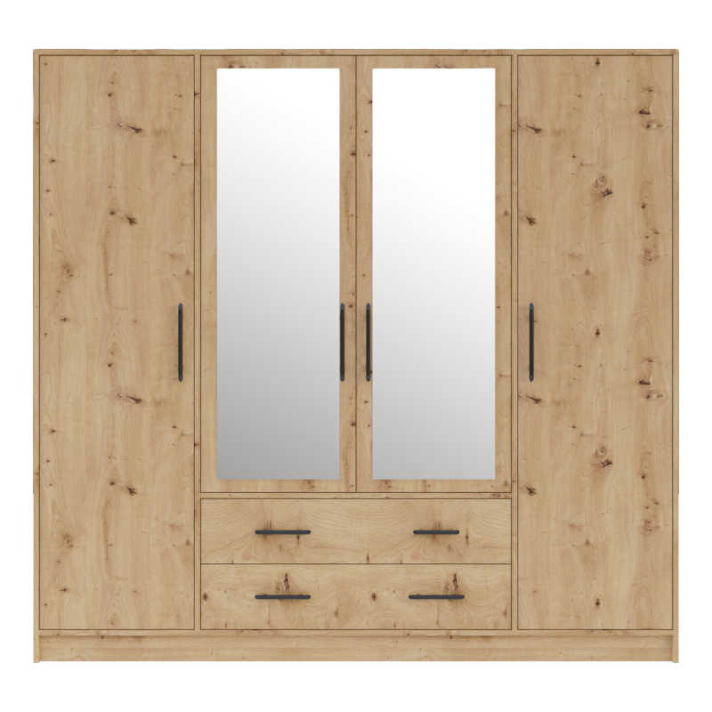 W skład zestawu wchodzą : szafka nocna SR7 – 2 sztuki, szafa SRL1 z lustrem + nadstawka SRN1, szafa SR2 + nadstawka SRN2 oraz łóżko SR6 ze stelażem. Cena nie obejmuje materaca.