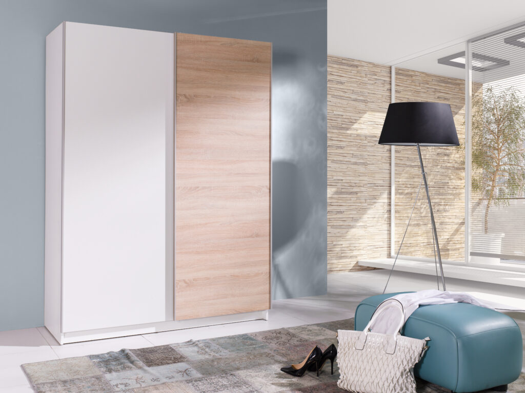 Nowoczesna szafa do sypialni z serii Batumi. Szafa zachwyci swoim wyglądem oraz funkcjonalnością. Meble z serii Batumi, charakteryzują się prostotą i wytrzymałością, a do tego są bardzo pojemne. Meble wykonane są z wysokogatunkowej płyty laminowanej z obrzeżami ABS oraz użyto aluminiowych profili bocznych. Wnętrze szafy to: półki i drążek. Szafa posiada przesuwne drzwi. Meble dostępne w różnych wersjach kolorystycznych.