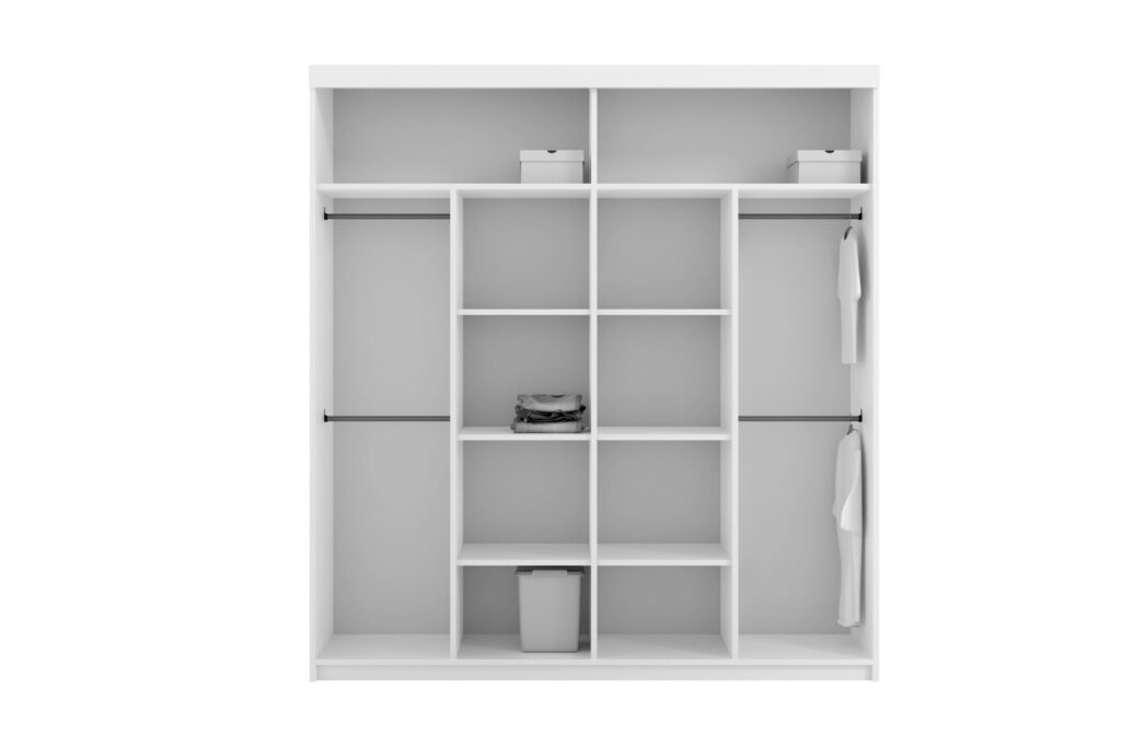 Szafa CARO 203 to elegancja i wyrazisty akcent we wnętrzu. Jej nowoczesny design dopełnia miedziane lustro z efektem szlifowanego rombu, które nadaje całości luksusowy wygląd. Połyskujące czarne wykończenie dodaje głębi i stylu, idealnie pasując do wnętrz w stylu glamour, loftowym czy nowoczesnym. Przesuwne drzwi zapewniają wygodę użytkowania nawet w mniejszych pomieszczeniach. Solidne wykonanie gwarantuje trwałość i estetykę przez lata.
