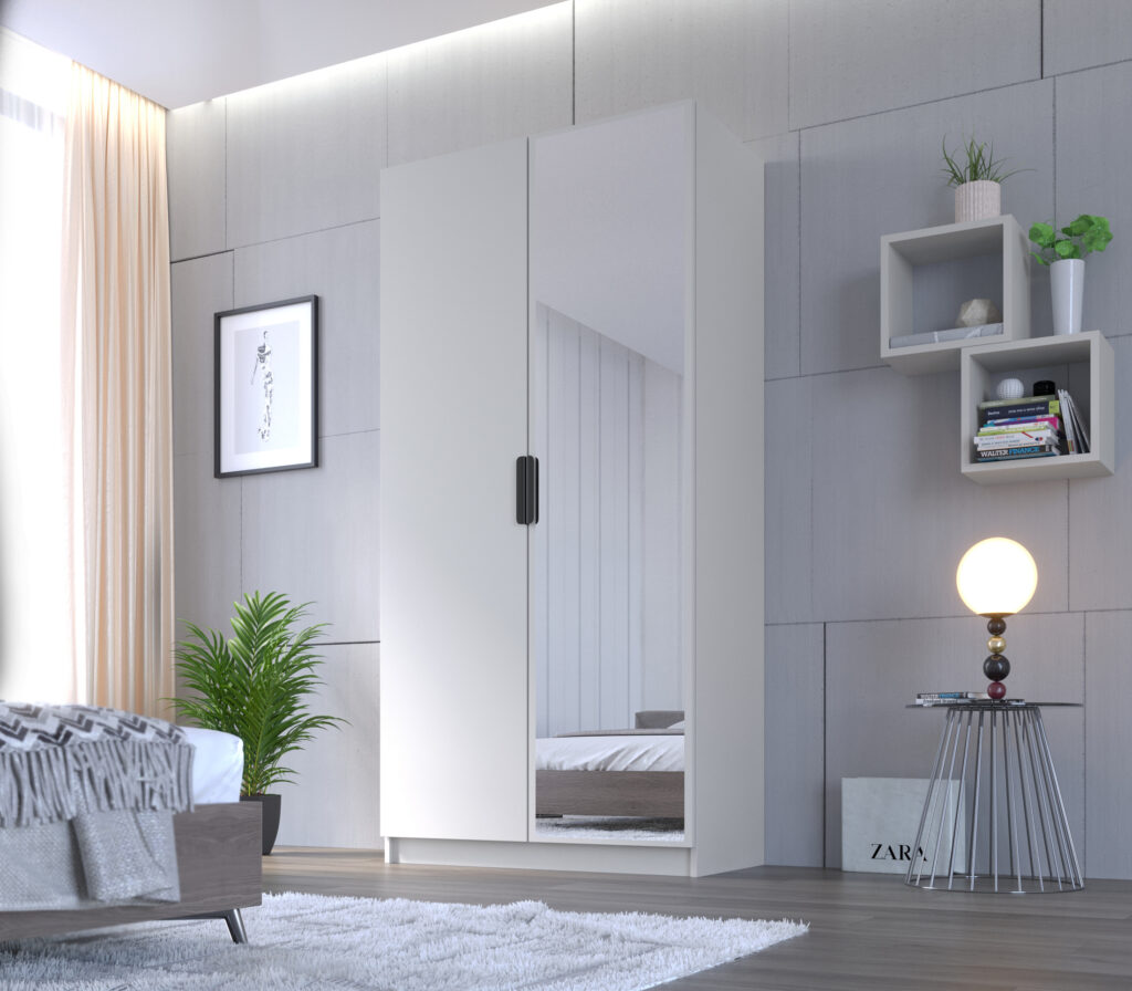 Szafa Cynthia 2D 100 cm 1 Lustro w kolorze szary / szary