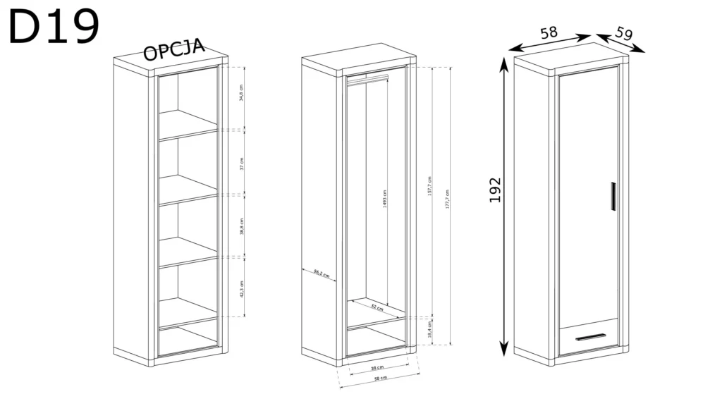 Prosta szafa z kolekcji Dallas, posiadająca jedną szufladę oraz szafkę, za którą kryje się drążek pozwalający za zagospodarowanie przestrzeni szafy.Mebel ten doda więcej elegancji i szyku jak się wydaję. Doskonała do salonu, jak i korytarza czy sypialni, można stworzyć z nią wiele aranżacji. Dostępna w dwóch wybarwieniach.
