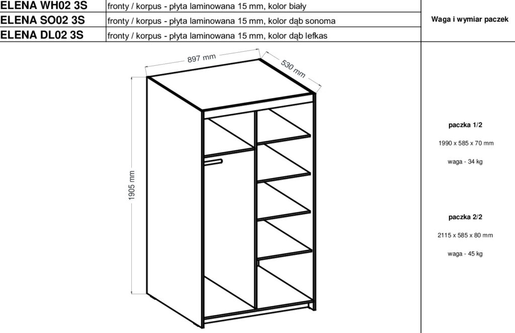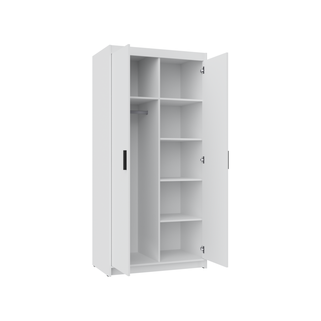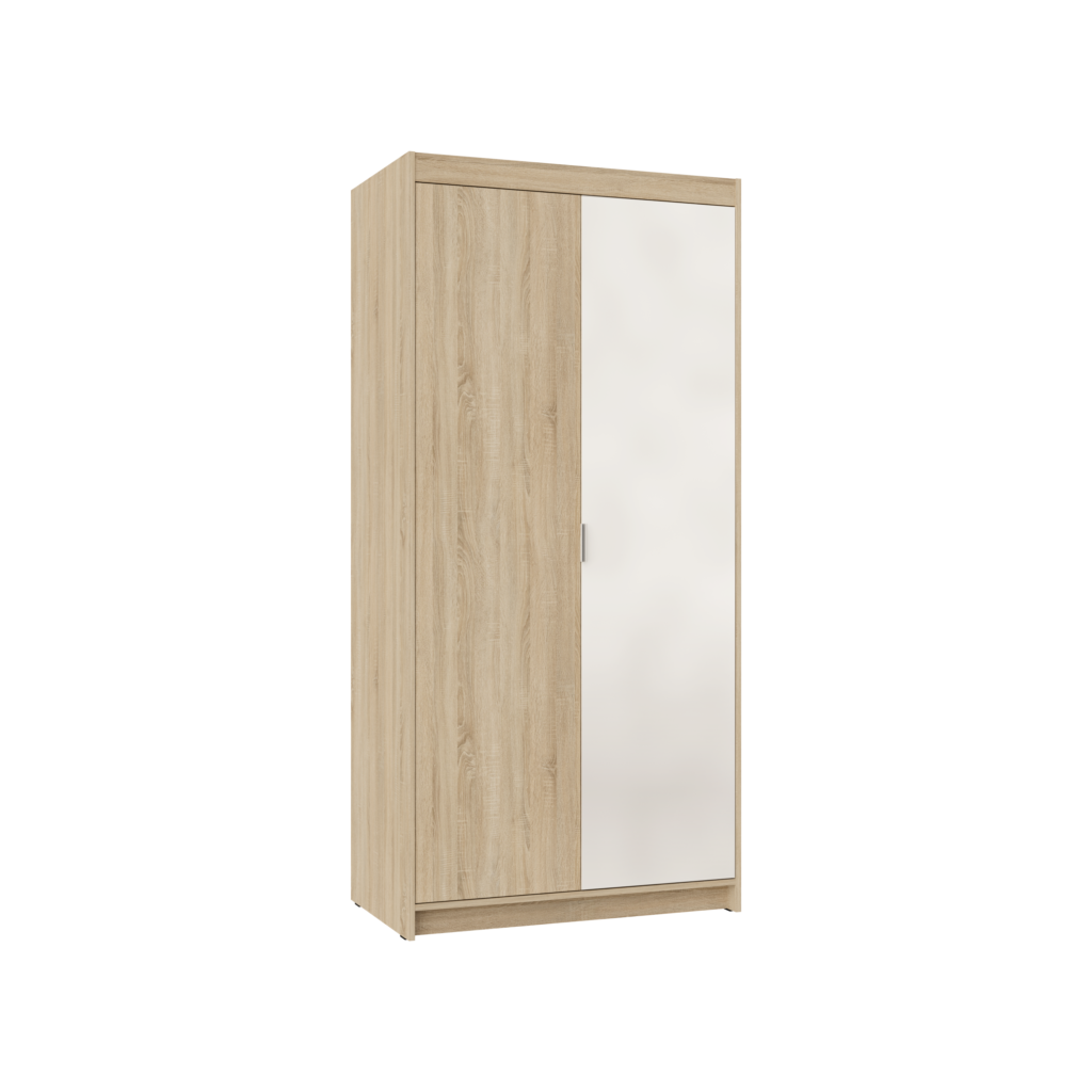 Szafa dwudrzwiowa, wykonana z płyty wiórowo laminowanej 16mm, oklejona obrzeżem PCV. Szafa dostępna w paczkach do samodzielnego montażu.