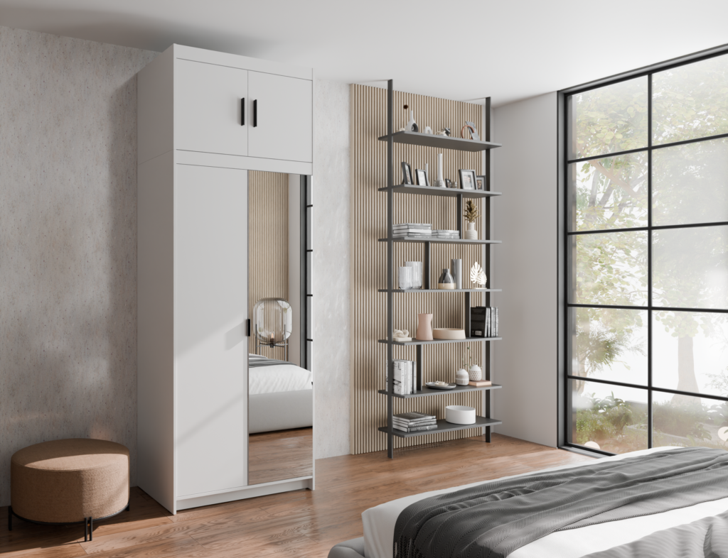 Pojemna garderoba wyposażona w półki i drążek co znacznie ułatwi przechowywanie ubrań.