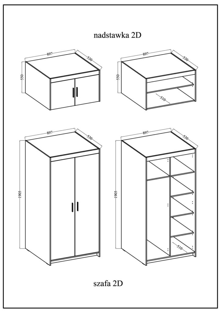 Dostępne są również inne wymiary szaf i ich konfiguracji.