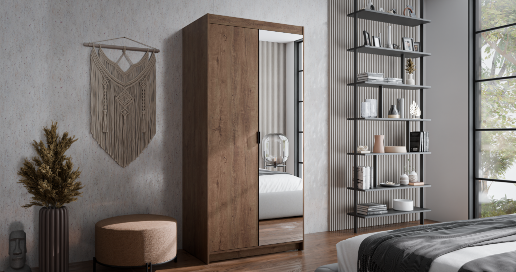 Wykonana ze starannością z wysokiej jakości materiałów daje gwarancję  użytkowania przez długie lata. Szafa dwudrzwiowa z 1 lustrem.