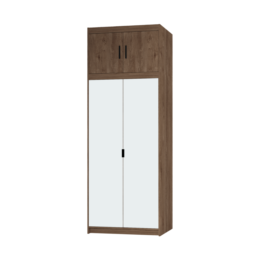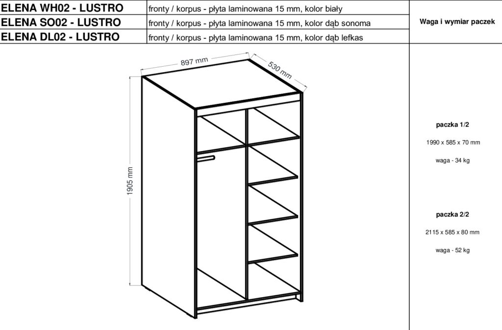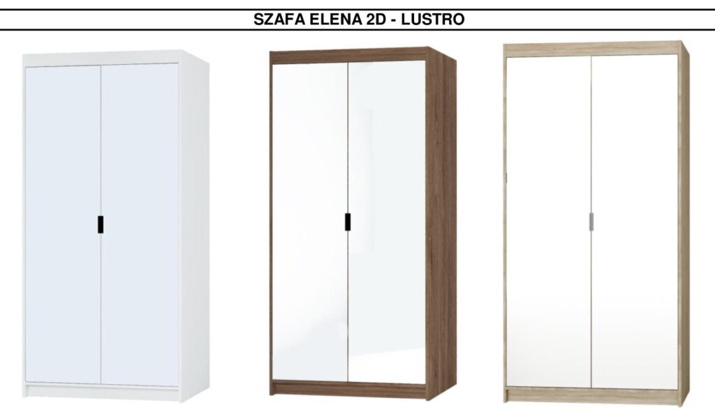 Szafa dwudrzwiowa, wykonana z płyty wiórowo laminowanej 16mm, oklejona obrzeżem PCV. Szafa dostępna w paczkach do samodzielnego montażu.