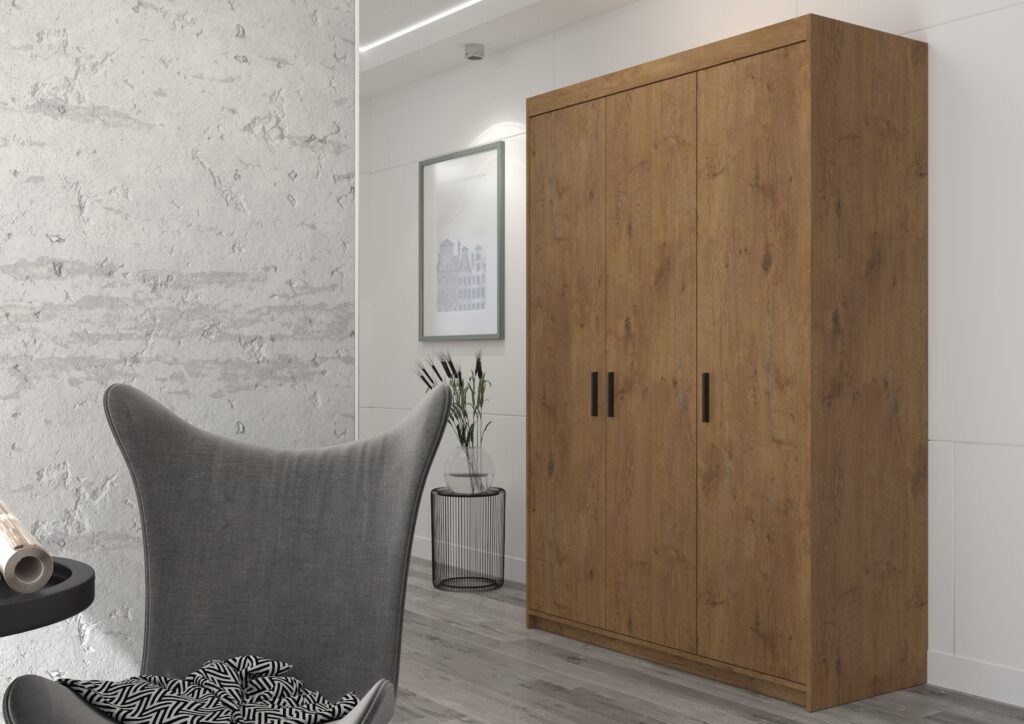 Ciekawa, a zarazem klasyczna kolorystyka wkomponuje się w styl Twojego mieszkania. Pojemna garderoba wyposażona w półki i drążek co znacznie ułatwi przechowywanie ubrań.