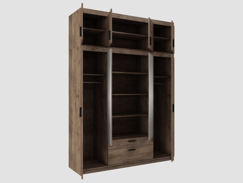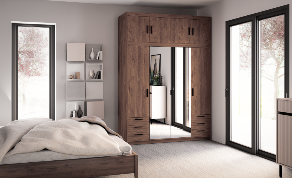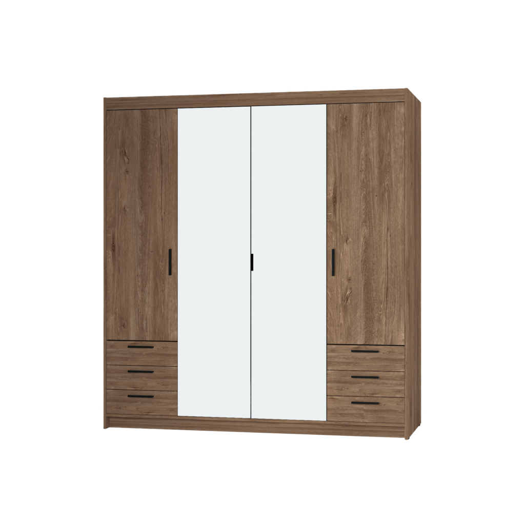 Wykonana ze starannością z wysokiej jakości materiałów daje gwarancję użytkowania przez długie lata. Szafa czterodrzwiowa, wykonana z płyty wiórowo laminowanej 16mm, oklejona obrzeżem PCV.