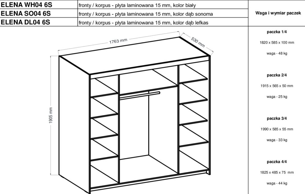 Ciekawa, a zarazem klasyczna kolorystyka wkomponuje się w styl Twojego mieszkania. Pojemna garderoba wyposażona w półki i drążek co znacznie ułatwi przechowywanie ubrań.