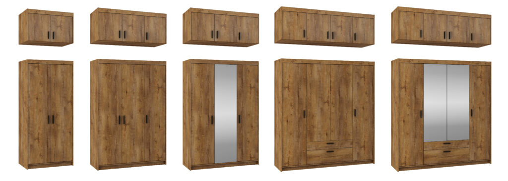 Istnieje możliwość dokupienia komody oraz meblościanki do szafy w tych samych kolorach.