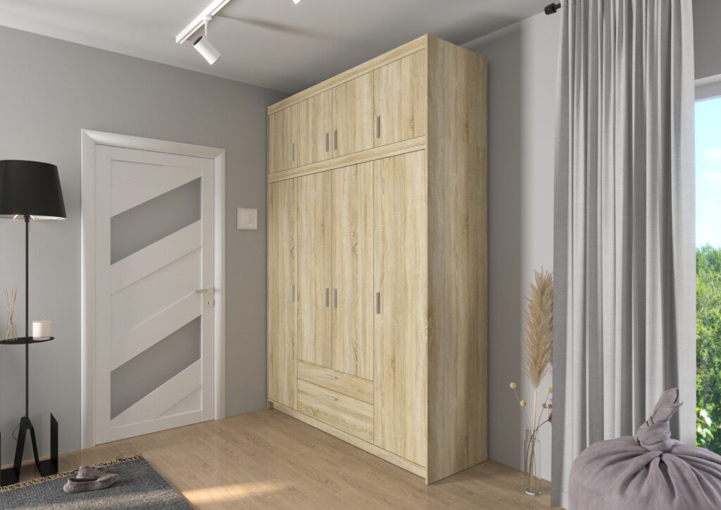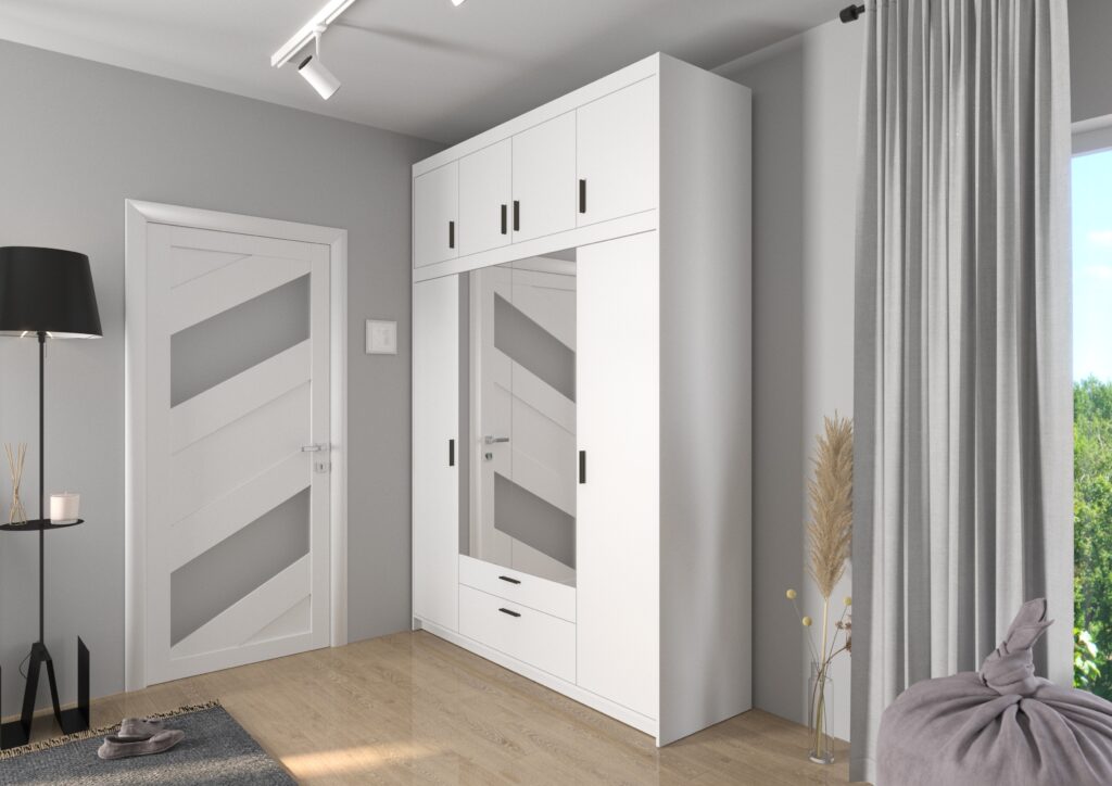 Ciekawa, a zarazem klasyczna kolorystyka wkomponuje się w styl Twojego mieszkania. Pojemna garderoba wyposażona w półki i drążek co znacznie ułatwi przechowywanie ubrań.