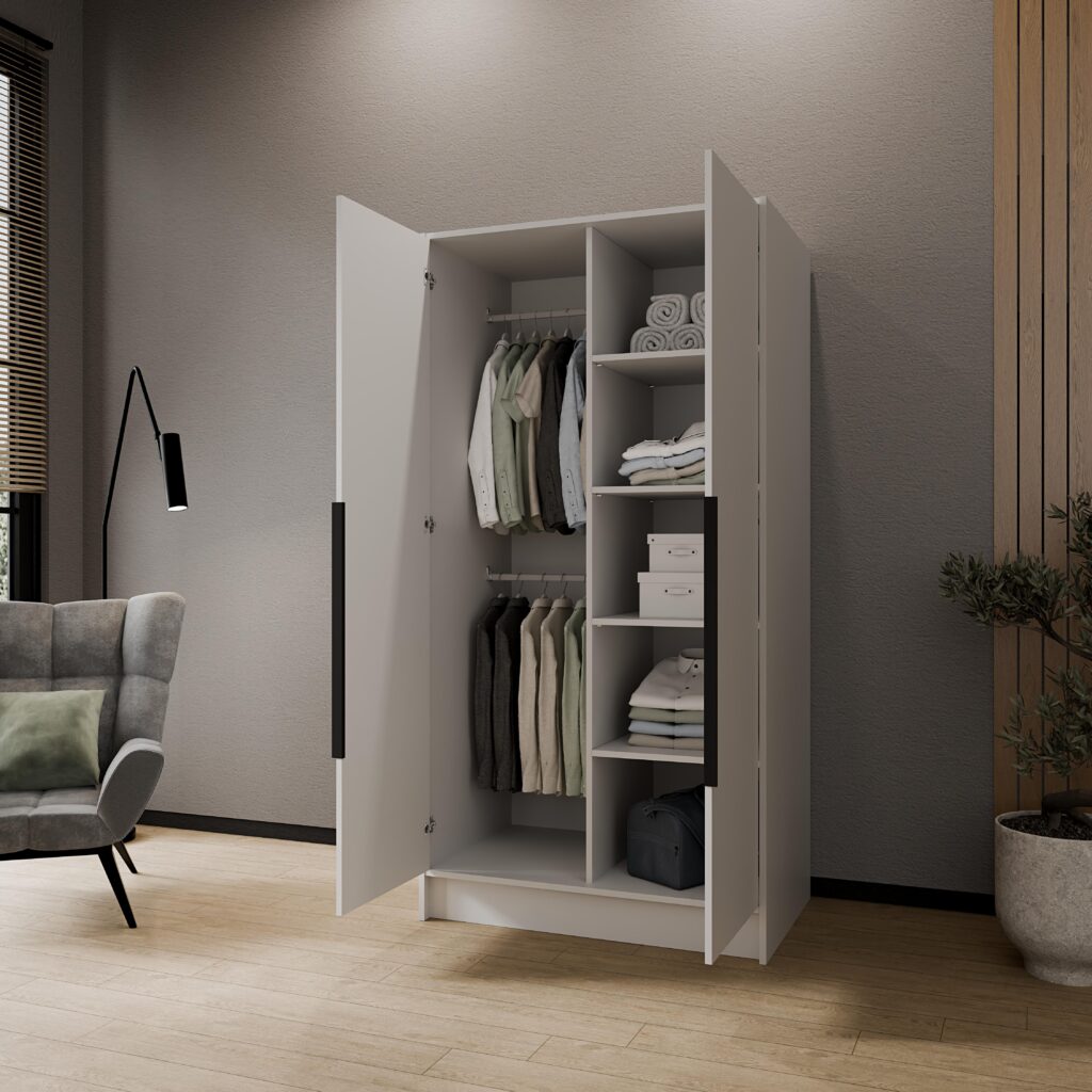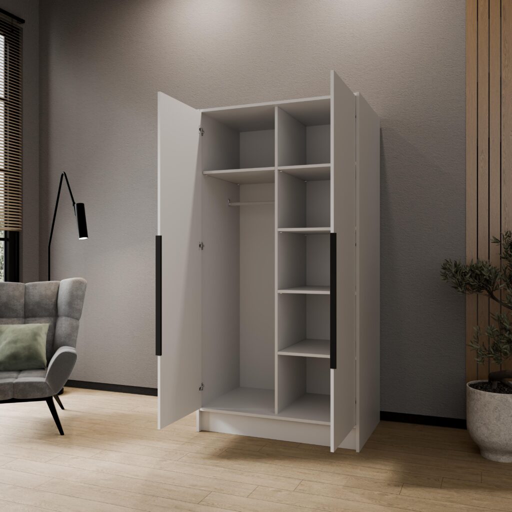 Szafa dwudrzwiowa Lusso 100 cm z lustrem w kolorze białym z uchwytami czarnymi
