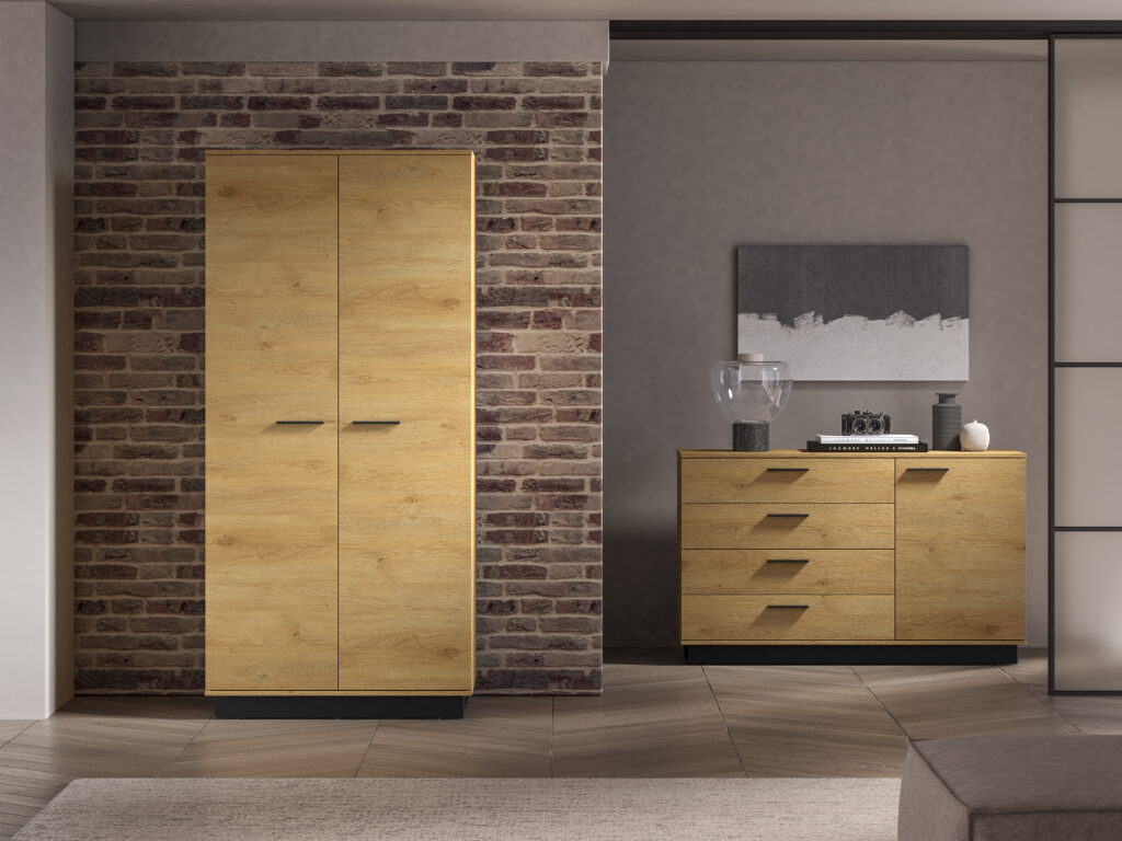 Szafa Modesto widoczna na zdjęciu poniżej w kolorze dąb stylowy / czarny