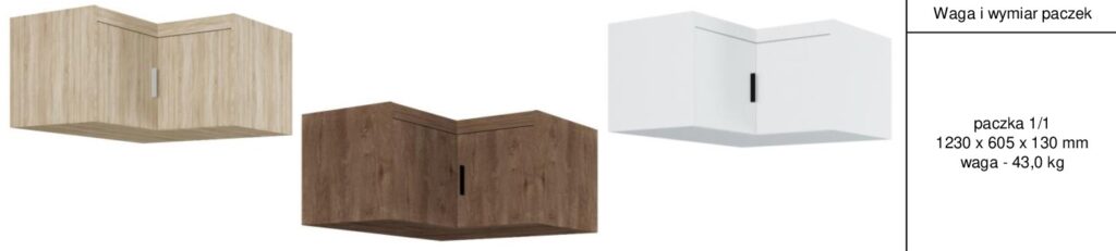 Wykonana ze starannością z wysokiej jakości materiałów daje gwarancję  użytkowania przez długie lata. Szafa narożna o stosunkowo dużej pojemności.