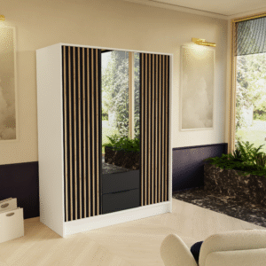 Szafa Nero z lustrem i lamelami 150 cm – Biały / Czarny – Arton