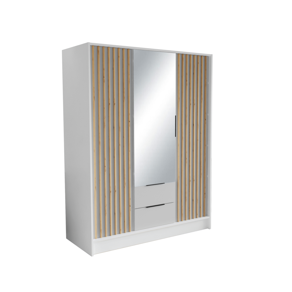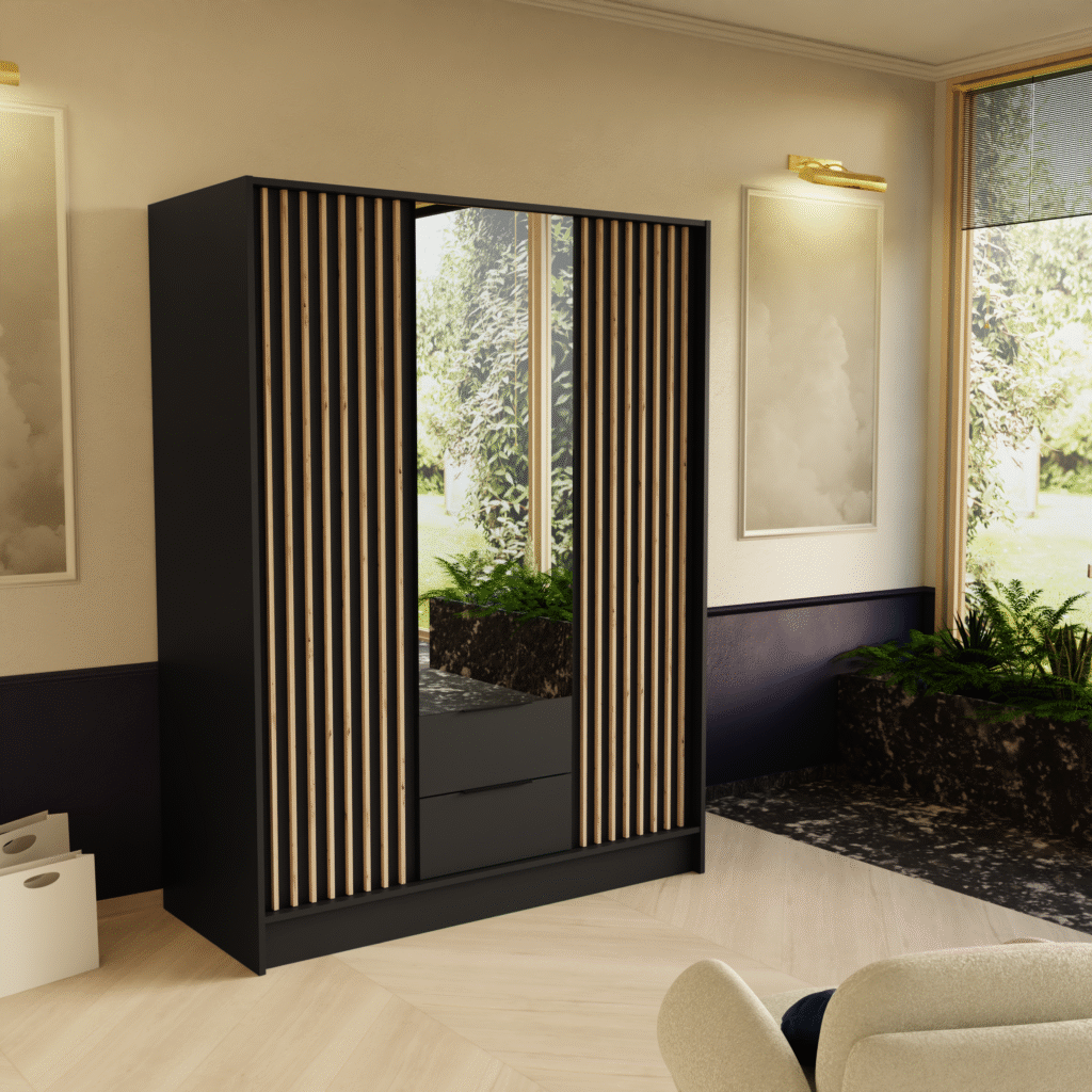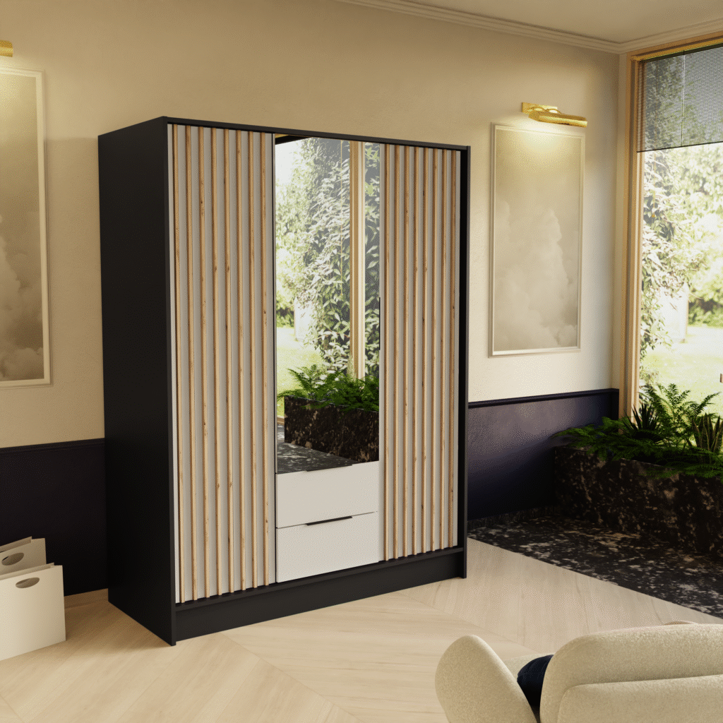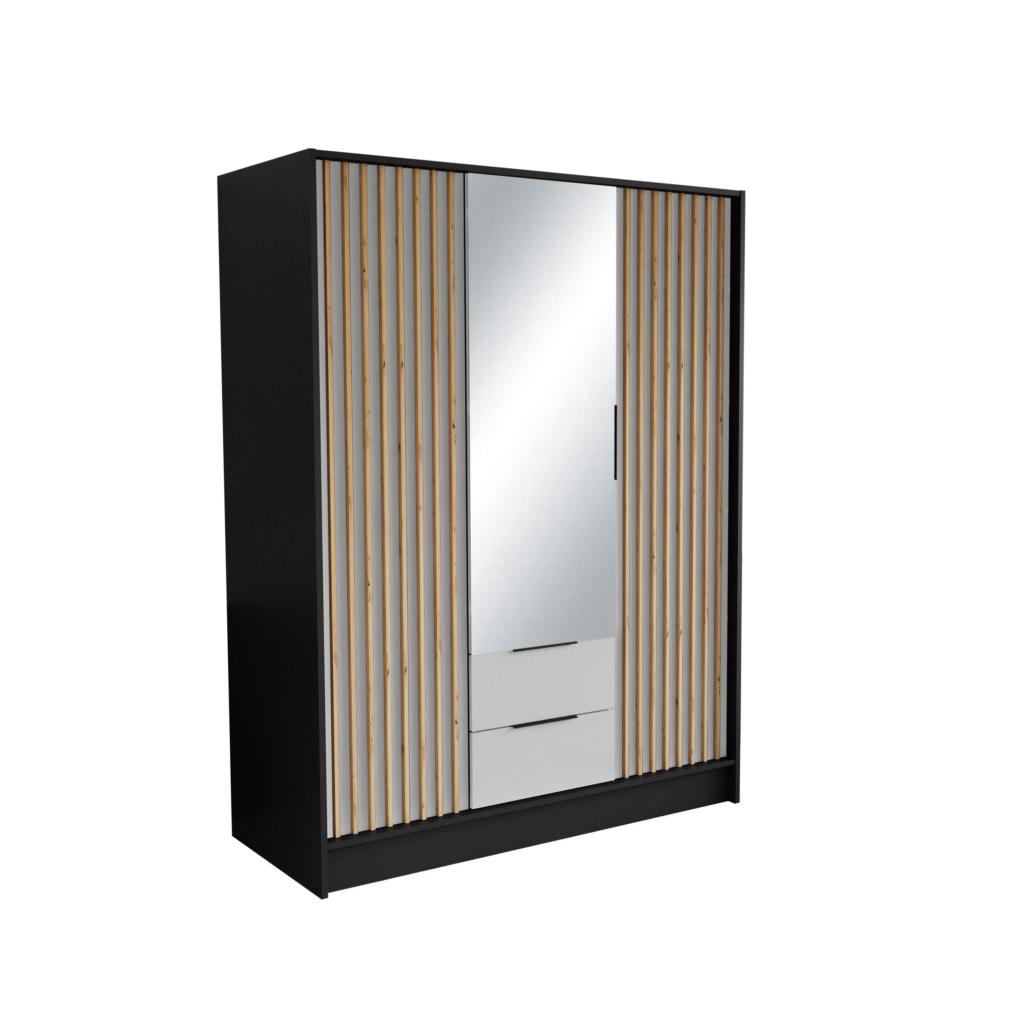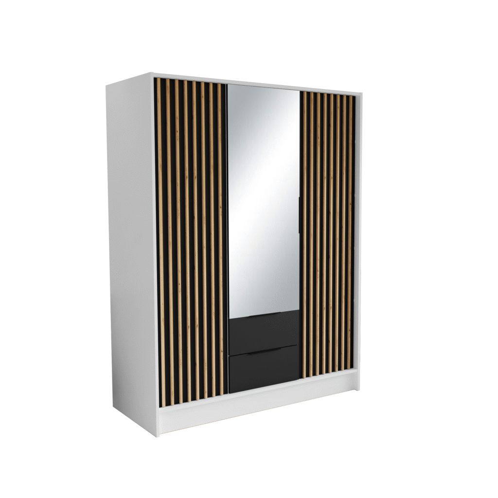 Szafa Nero z lustrem i lamelami 150 cm – Biały / Czarny – Arton
