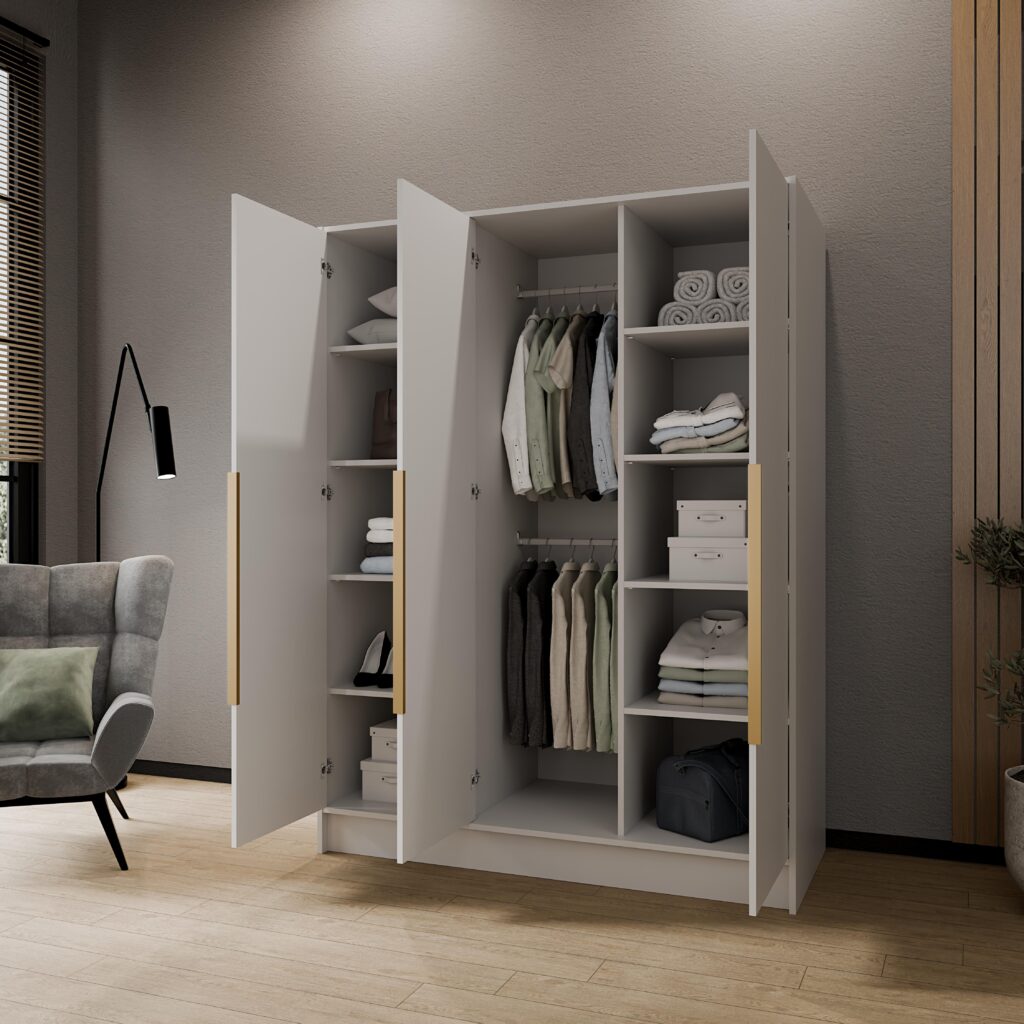 Szafa trzydrzwiowa Porto 150 cm w kolorze białym z uchwytami złotymi