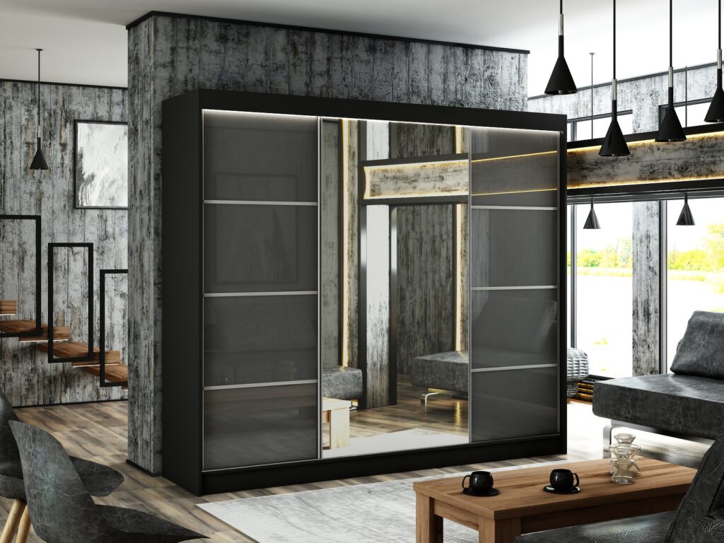 Szafa Przesuwna Velis III Lustro 250 cm Czarny/Lakobel Biały – Arton